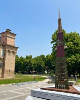 L’imponente scultura – sette metri d’altezza – andrà a sostituire l’Obelisco per Cleopatra, che per oltre quattro anni ha caratterizzato e valorizzato Piazza Lusvardi, chiudendo un ciclo e aprendone un altro nel segno della continuità e della visione artistica condivisa. Lancia di Luce II è un’opera iconica, potente e simbolica, che entra a pieno titolo nel patrimonio culturale d’Italia: nella scultura si può leggere la storia industriale dal trattamento del ferro, dell’acciaio e delle operazioni sul materiale incandescente; una metafora dell’invenzione umana e dello sviluppo di ogni ricerca.