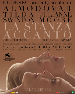 Martha ha un tumore incurabile e chiede all’amica Ingrid di starle vicino e di non abbandonarla nel momento in cui deciderà di mettere fine alle sue sofferenze. Per il suo primo lungometraggio in lingua inglese Almodóvar adatta liberamente il romanzo di Sigrid Nunez e affida i ruoli delle protagoniste a due attrici di enorme bravura e sensibilità: Tilda Swinton e Julienne Moore- Il film è stato vincitore del Leone d’oro al Festival del cinema di Venezia 2024.